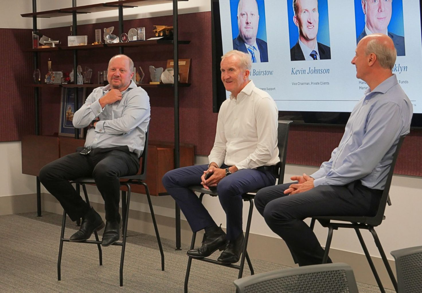 随后,小组听取了执行主席兼创始人埃迪-里格(Eddie Rigg)对其领导经验的一些反思,以及他个人对行业长寿的一些建议。随后,研究部主管 Hayden Bairstow、私人客户部副主席 Kevin Johnson 和基金管理部主管 David Frankyln 就各部门如何为企业的成功做出贡献以及当前的市场趋势进行了小组讨论。.